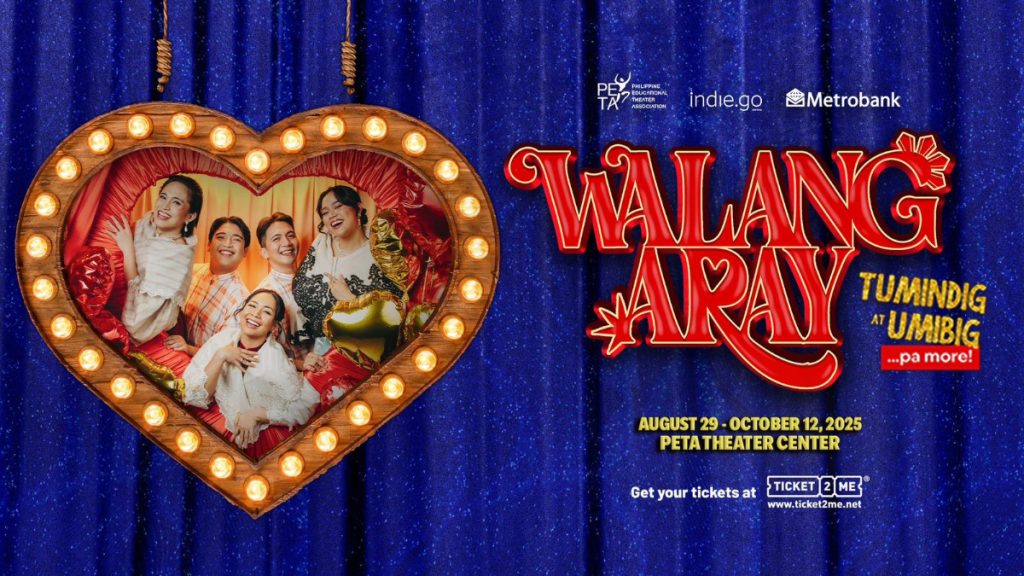 Walang Aray is produced by PETA in partnership with Indie.Go Media, together with its official banking partner, Metrobank. The show runs for 38 shows at the PETA Theater Center from August 29-October 12, 2025. Tickets are now on sale via Ticket2Me.net