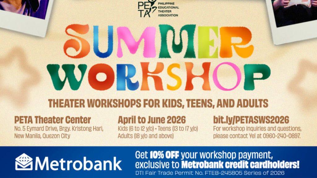In partnership with Metrobank, PETA continues to make world-class theater training more accessible by offering an exclusive 10% discount to Metrobank credit cardholders on select workshop programs. This special offer underscores both organizations’ commitment to fostering artistic growth and expanding opportunities for creative learning in the Philippines.