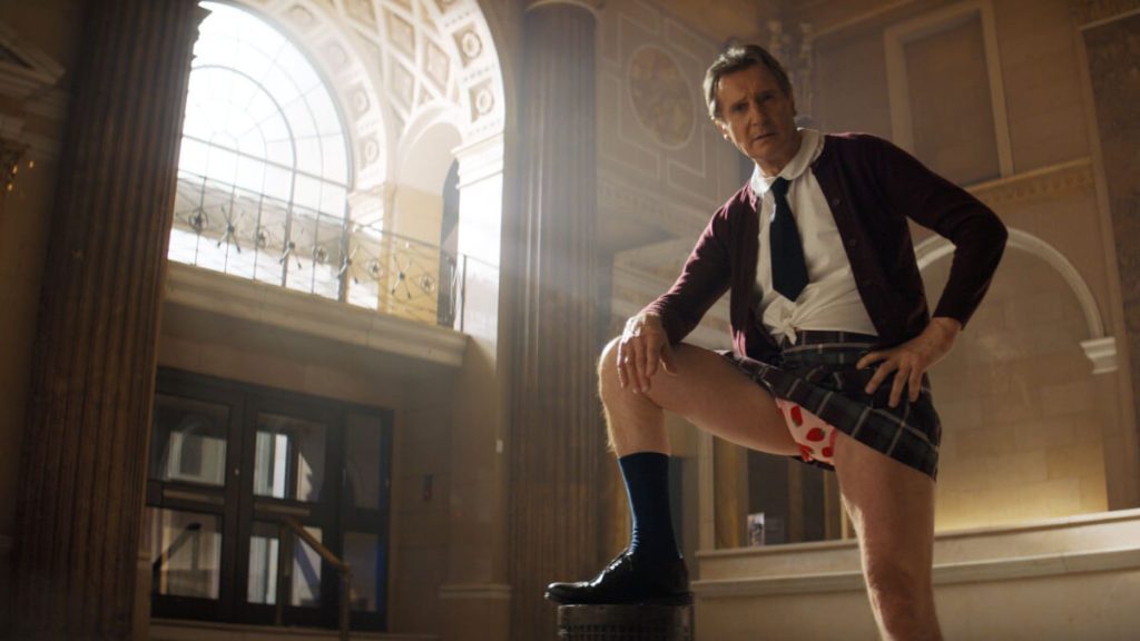 Known for his gravitas in Schindler’s List and stone-cold coolness in Taken, Neeson proves that comedy isn’t off-limits.