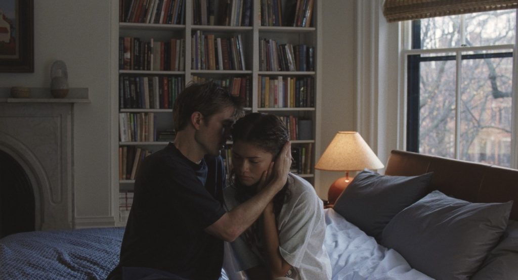 The film opens with Charlie (Pattinson) seeing Emma (Zendaya) at a cafe and becoming instantly smitten. In an attempt to ask her out, he lies about having read the book she’s reading. And this awkward meet-cute, so well executed, triggers a jump to two years later, where the couple is engaged and writing their wedding speeches. The opening serves as a flashback, and through the drafting of their speeches, we get to see the couple through each other’s eyes. With only weeks left to their wedding, and in the midst of the wedding coordination, Charlie discovers something about Emma’s past that sends him on a tailspin. It is rather shocking – an important detail that was left out – and the ramifications in the days leading up to the wedding creates the film’s title: the drama.